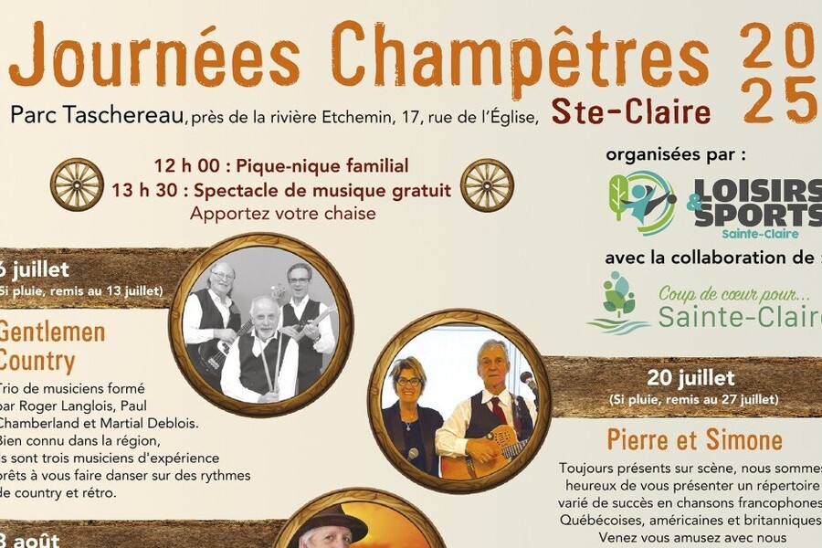 Spectacles dans le parc Taschereau près de la rivière Etchemin. Pour consulter la programmation